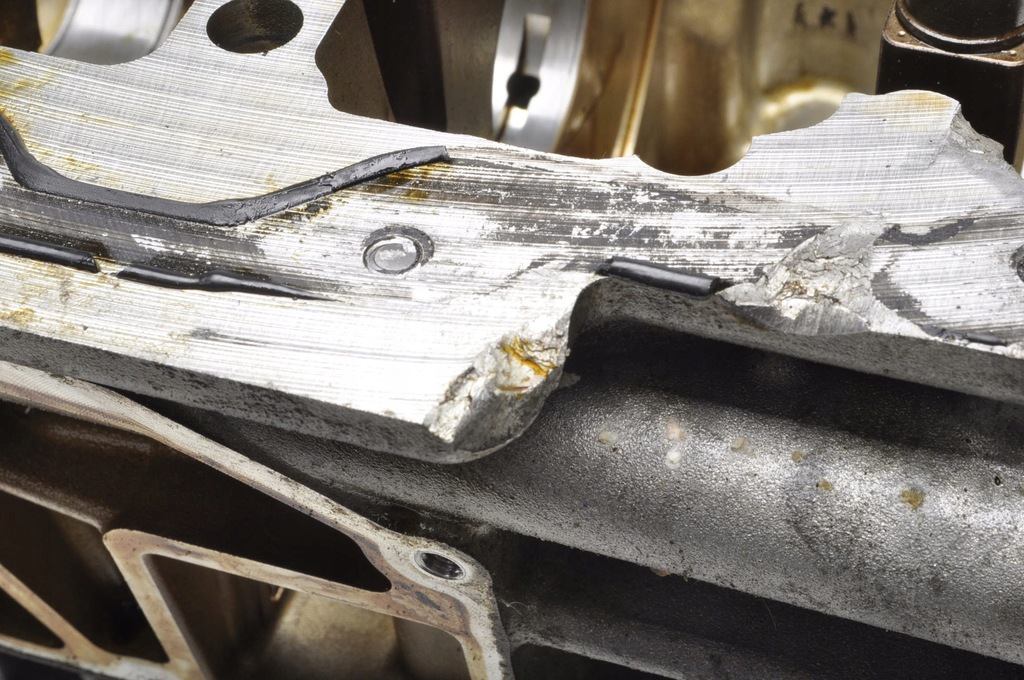 TWO BROKEN SCREWS FROM THE BOWL. ONE OF THE TWO CATALYST MOUNTINGS CRACKED, THE ENGINE WAS FULLY OPERATING, THE OIL PAN AND THE OIL PUMP WERE DEFECTED,