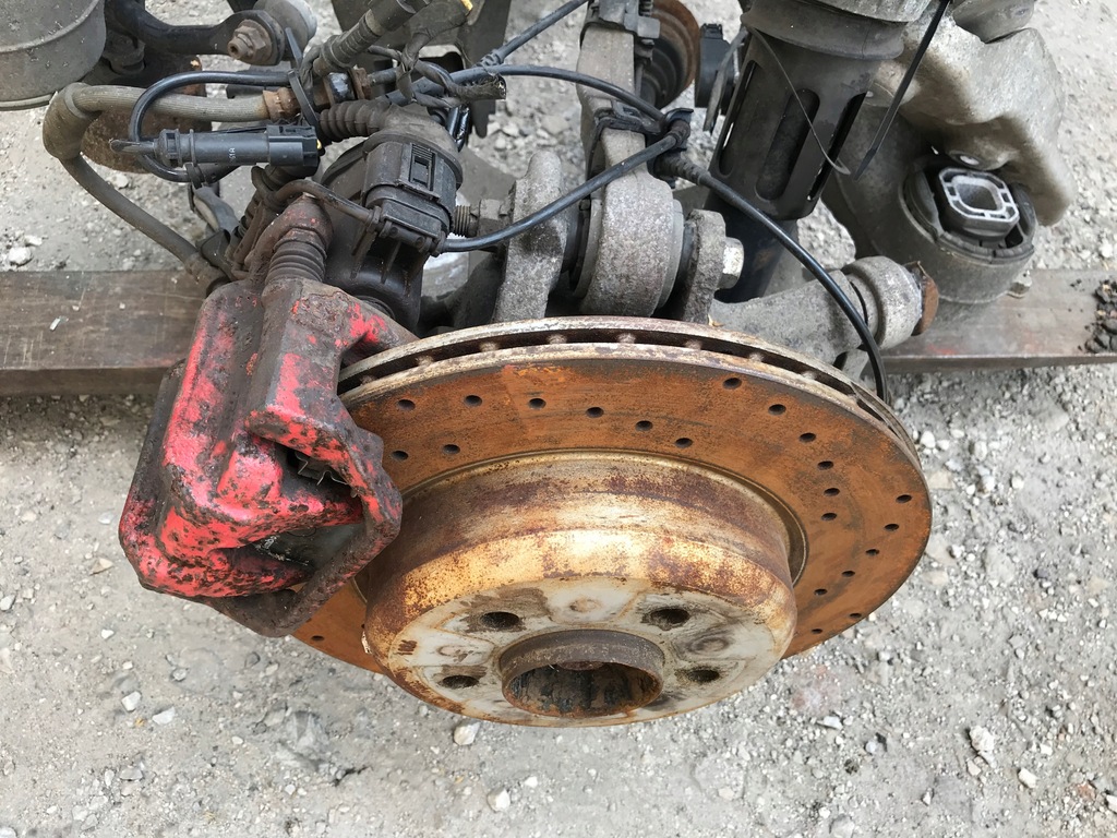 Original suspension, the whole auction includes: beam / trolley, 2x electric brake caliper, 2x shock absorber, stabilizer rod, 2x ventilated + drilled brake disc, suspension arms, hubs, ABS sensors and light leveling sensors. The price for the whole is visible in the photos.