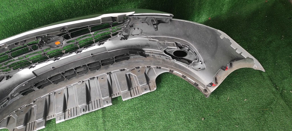 The bumper is in very good condition, undamaged, uncracked, undamaged, all handles and fastenings intact, on the right side there is abrasion on the paint and above the grille in one place, it has been professionally welded 3 cm visible in the photos, the middle grille is intact, the lower right spoiler is intact, side the grilles are intact, the left one has scratches visible in the photos, the original paint has scratches and scratches. The dummy is in good condition, the chrome is not cracked, the base of the dummy has a small abrasion in one place and one mounting eyelet is torn, defects visible in the photos.