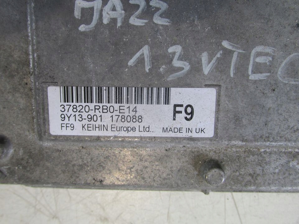 PARTS DESCRIPTION: COMPUTER CONTROLLER 37820-RB0-E14 VERSION (origin): EUROPEAN BRAND: HONDAMODEL: JAZZ III TYPE: YEAR OF PRODUCTION: 2009 TYPE OF ENGINE: 1.4 VTECNUMBER OF PAINT: