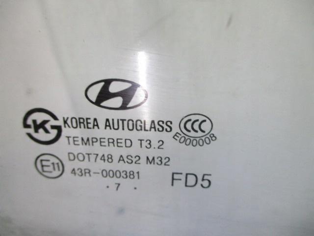 Description: European version. original. rear right (FD.1.6CRDi.16V.66kW.90KM.ABS.klima.5d H / B engine code D4FB. color code 9A) -quality A && HYUNDAI i30 07-10r HB DOOR GLASS RIGHT REAR