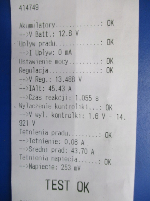 Description: ELMOT. no markings. tested on the ONYX TMA device. test result in the photo (1.6 carburetor 8V.55kW.75KM.box) - quality A && POLONEZ 1.6 ALTERNATOR ELMOT TESTED