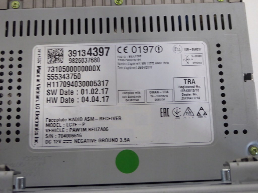 | Part number | 39134397 |
