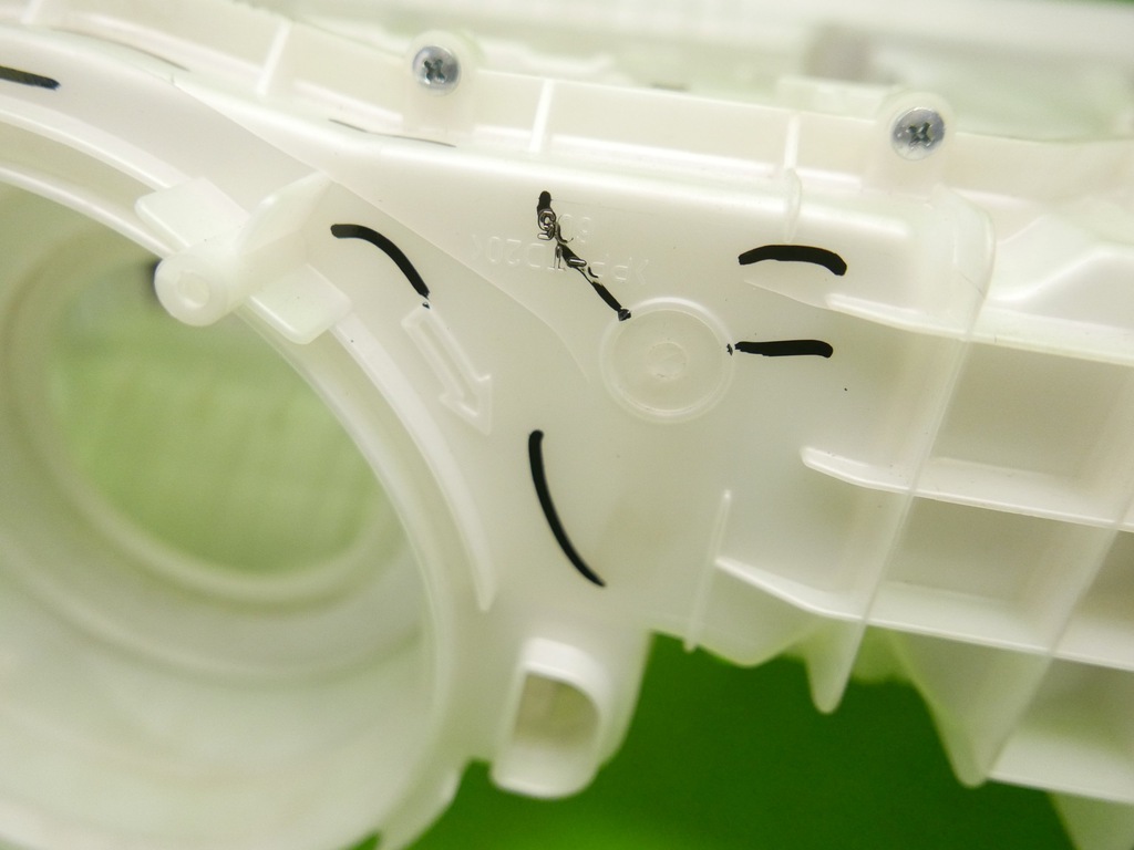STATE:. Cracks marked in color in the photos. Used part, reusable.
