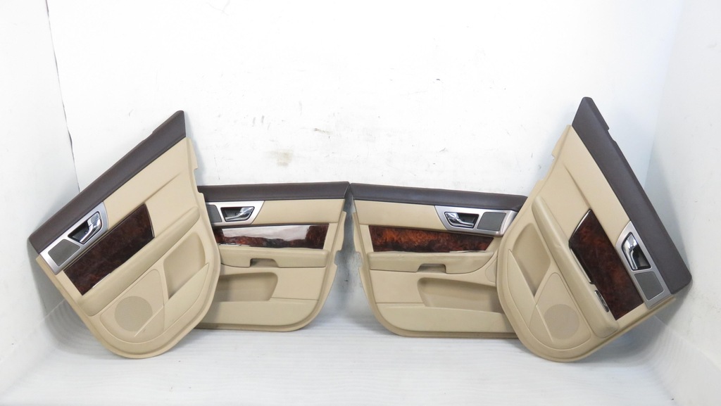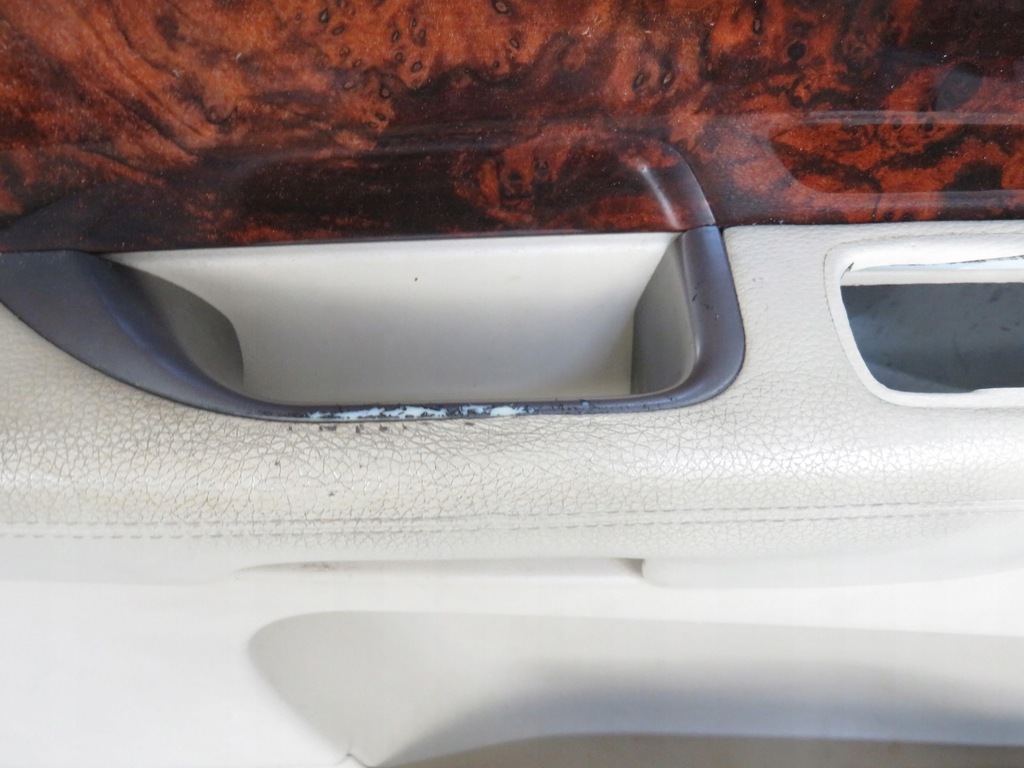 UPHOLSTERED SEATS IN BEIGE LEATHER, ELECTRICALLY ADJUSTABLE, WITH SEAT BELTS CLOCKS, WITH AIR BAG CUSHIONS, CREATED AND SLIGHTLY WORN LEATHER ON THE SEATS, THE SET INCLUDES: FRONT SEATS - PL + PP, TWO REAR SEATS LINEN WITH A FOLDABLE DOUBLE BACK BACK AND WITH SEAT BELTS LOCKS, WITH OPENABLE CENTER ARMRESTS, DOOR SIDES - LP + PP + LT + PT, PLASTIC, UPHOLSTERED IN LEATHER IN THE PART ABOVE THE ARMRESTS, WITH WOOD-LIKE DECORATIVE STRIP. SIDE ARMREST - LP - PARTLY WRAPPED PLASTIC ELEMENT, REAR SEAT SIDES COVERED IN LEATHER.